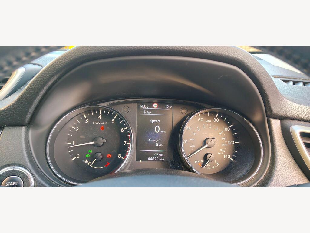 Cloth - Graphite, 17in Alloy Wheels - 5-Spoke in Silver, 6 Speakers, 60-40 Split Rear Folding Seats, ABS - Anti Lock Brakes, AUX-In Socket, Airbag - Driver, Airbag - Passenger, Airbags - Curtain, Airbags - Side, Alarm, Armrest - Rear, Auto Dimming Rear View Mirror, Auto Rain Sensing Wipers, Black Honeycomb Front Grille, Body Coloured Handles, Brake Assist, Bumpers - Body Coloured, Chrome Glass Surround, Climate Control - Dual Zone, Cruise Control with Speed Limiter, DAB Radio, Door Mirrors - Body Coloured, Door Mirrors - Power Fold and Heated, Driver Seat Height Adjustment, EBD - Electronic Brakeforce Distribution, ESP - Electronic Stability Programme, Electric Speed-Sensitive Power Steering, Front Armrest, Front Collision Avoidance, Front Fog Lights, Front and Rear Electric Windows, Head Restraints - Active Front, Head Restraints - Rear, Headlights - Auto, Headlights - Auto High-Low Beam, Hill Start Assist, ISOFIX Childseat Anchorage Points - Middle Row Outer Seats, Immobiliser, Intelligent Key, Interior Ambient Lighting, LED Daytime Running Lights, Lane Departure Warning, Leather Gear Knob, Leather Steering Wheel, Luggage Board System, Lumbar Support, Panoramic Glass Roof, Parking Sensor - Front, Pollen Filter, Puncture Repair Kit, Push Start-Stop Button, Radio-CD, Rear Cupholder, Rear Door Child Locks, Rear Parking Sensor, Rear Privacy Glass, Rear View Camera, Satellite Navigation - Nissan Connect, Service Indicator, Smart Vision Pack, Speed-Sensitive Autolock Function, Steering Wheel Mounted Audio Controls, TPMS - Tyre Pressure Monitoring System, Telephone - Bluetooth Integration, Tilt and Telescopic Adjustable Steering Wheel, Touch Screen 7in, Traction Control, Traffic Sign Recognition, Trip Computer, USB Port, e-PKB - Electric Parking Brake